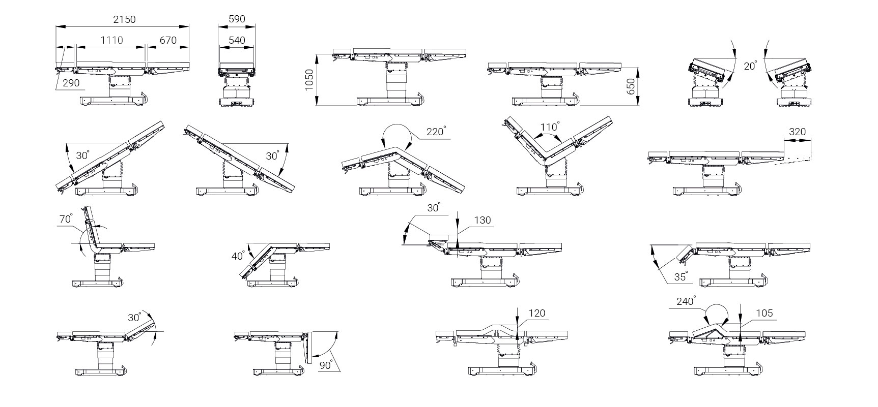 Электромеханический стол ОК-ТЕТА-ПЛЮС - универсальный многофункциональный операционный стол для проведения всего спектра хирургических операций (с использованием комплектов сменных приспособлений).