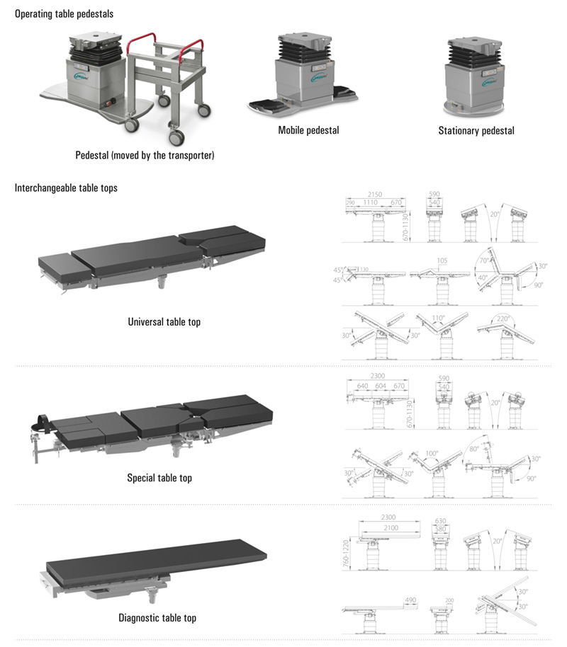Operating table OM-SIGMA is compatible with all sets of additional accessories produced by the company.