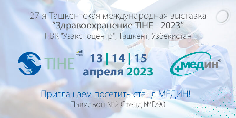 Приглашаем посетить стенд Медин на 27-ой Ташкентской международной выставке «Здравоохранение TIHE-2023», которая пройдет с 13 по 15 апреля 2023 года в НВК "Узэкспоцентр", Ташкент, Узбекистан.