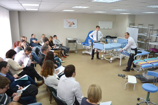 По многочисленным просьбам и предложениям наших партнеров в апреля состоялся первый бизнес-тренинг по продажам Медин. На заводе в Минске собралось 49 человек из 32 компаний России и Казахстана. Мероприятие по праву можно считать масштабным и насыщенным. За два дня активной работы участники познакомились с историей создания и развития Иностранного унитарного предприятия «Мединдустрия Сервис», увидели весь технологический процесс от разработки до реализации, включая производство, сборку и хранение продукции. Кроме того, участники узнали отличительные особенности продукции, ее технические характеристики и фирменные приемы продвижения. Обучение проходило по тематическим блокам: общая часть, операционные столы и комплекты, оборудования для гинекологии и акушерства, тележки для перевозки больных, а также общебольничное оборудование и мебель. В завершении тренинга всем участникам были вручены именные сертификаты.