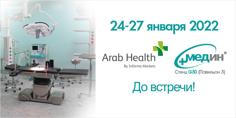 Приглашаем посетить наш стенд H3.G30 на выставке Arab Health 2022, которая состоится 24-27 января во Всемирном торговом центре Дубая (ОАЭ), где наши специалисты продемонстрируют инновационные модели операционных столов с комплектами приспособлений для травматологических, ортопедических и кардиологических операций.