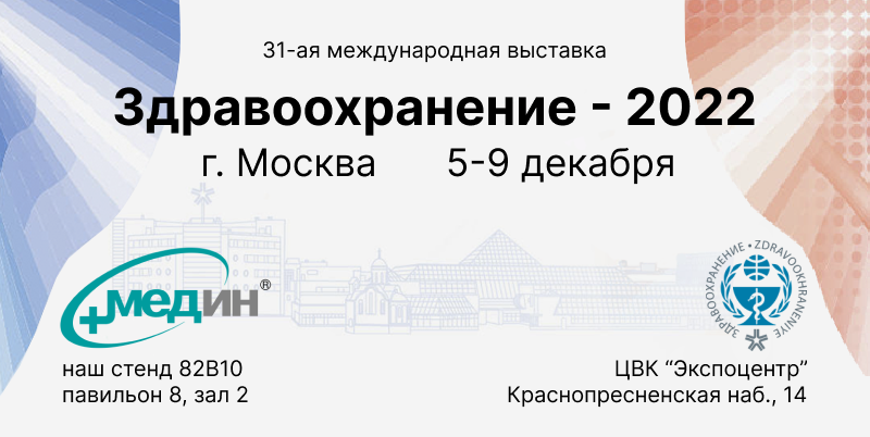 Приглашаем посетить экспозицию Медин на международной выставке «Здравоохранение - 2022», которая пройдет в рамках научно-практического форума «Российская неделя здравоохранения».