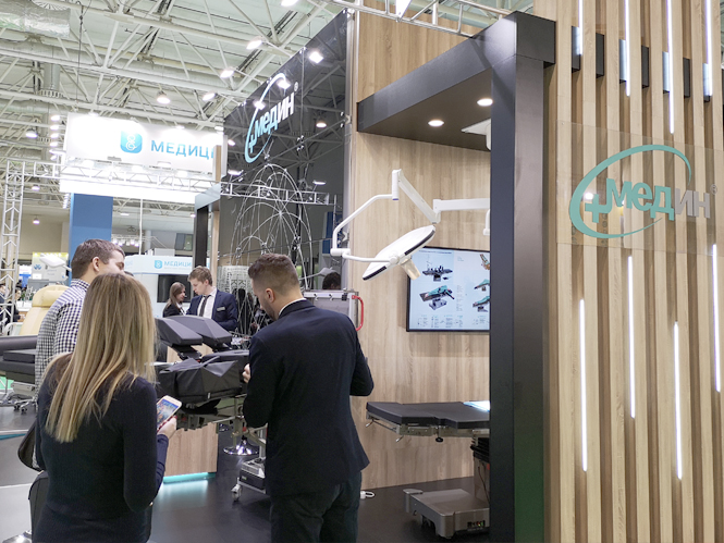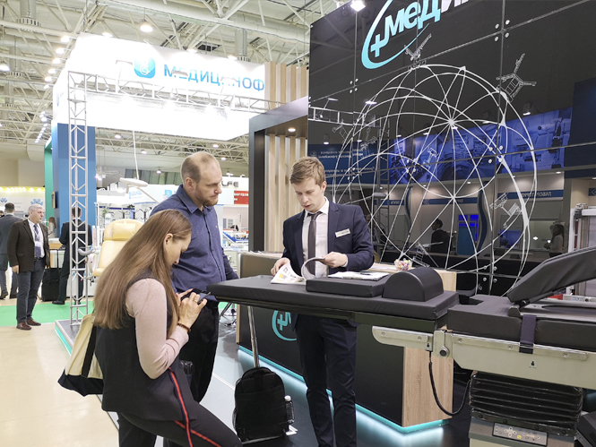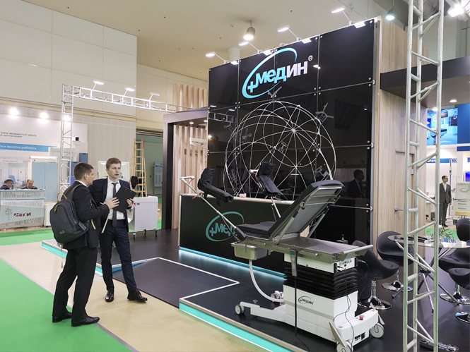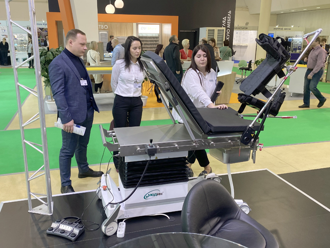 На выставке наши специалисты провели презентацию продукции Медин, показали и объяснили конструктивные особенности наиболее востребованных моделей операционных столов, гинекологических кресел, реанимационных тележек и общебольничной мебели; консультировали по вопросу применения хирургического света, а также предоставляли информацию по комплексному оснащению медицинских учреждений.